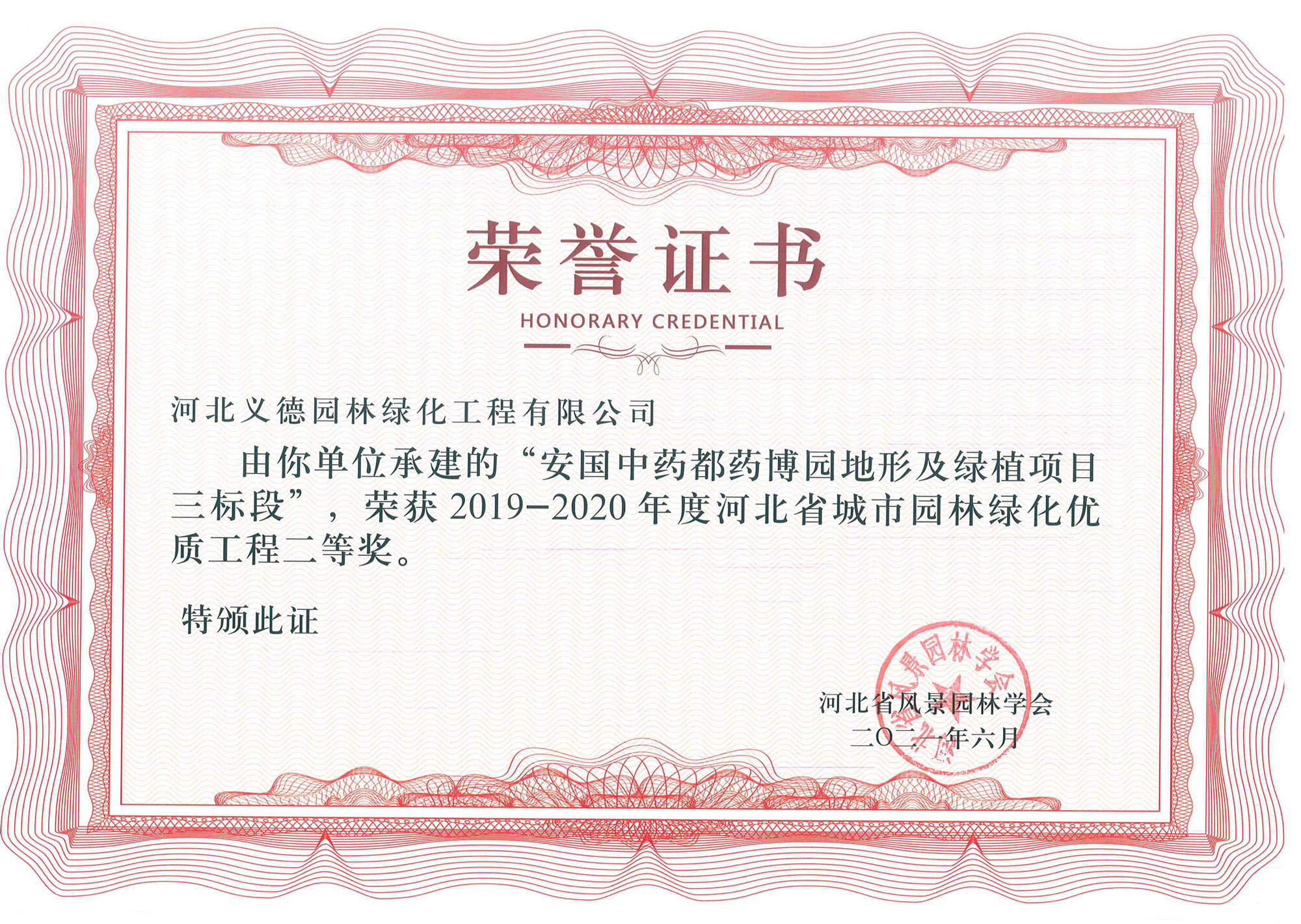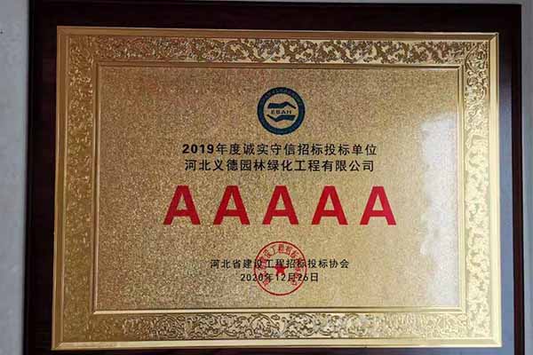 近幾年來我公司被授予2019年-2022年河北省扶貧龍頭企業(yè)、2018年國家林業(yè)標(biāo)準(zhǔn)化示范企業(yè)、2019年度全國苗圃50強(qiáng)、2018-2019年度河北省林業(yè)重點(diǎn)龍頭企業(yè)、2018年保定市精品特色現(xiàn)代農(nóng)業(yè)園區(qū)、2018年度保定林木種苗協(xié)會(huì)授予特色苗圃、2018年度北方十佳特色苗圃、2016-2019年河北省建設(shè)工程招標(biāo)投標(biāo)誠實(shí)守信5A級(jí)施工企業(yè)等榮譽(yù)稱號(hào),2017年保定市林木種苗龍頭企業(yè)、石家莊市2017年度優(yōu)秀園林企業(yè)。
